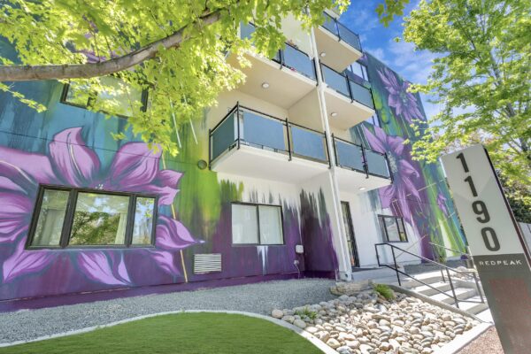 RedPeak takes a long-term ownership view on our portfolio and from time-to-time, this presents an opportunity to do something incredibly unique. At 1190 Birch, the tile on the building’s façade needed to be replaced. Rather than simply replace it with like tile or basic stucco, we passed the potential concepts through our mission statement and core values – as we do with all of our major decisions. Our mission statement is to Energize Communities. Bring People Together. Our core values include Do It With Style and Own It. Meaning we always take the opportunity to add our own flair and unique style where possible and we approach every conversation differently because we own our communities. We simply do it right. Working with NINE dot Arts, and after interviewing many artists, we decided to work with Taylor Herzog because we felt her style not only reflected RedPeak, but would energize the surrounding neighborhood. We wanted to deliver an experience that would make our residents even more proud to come home to 1190 Birch.
